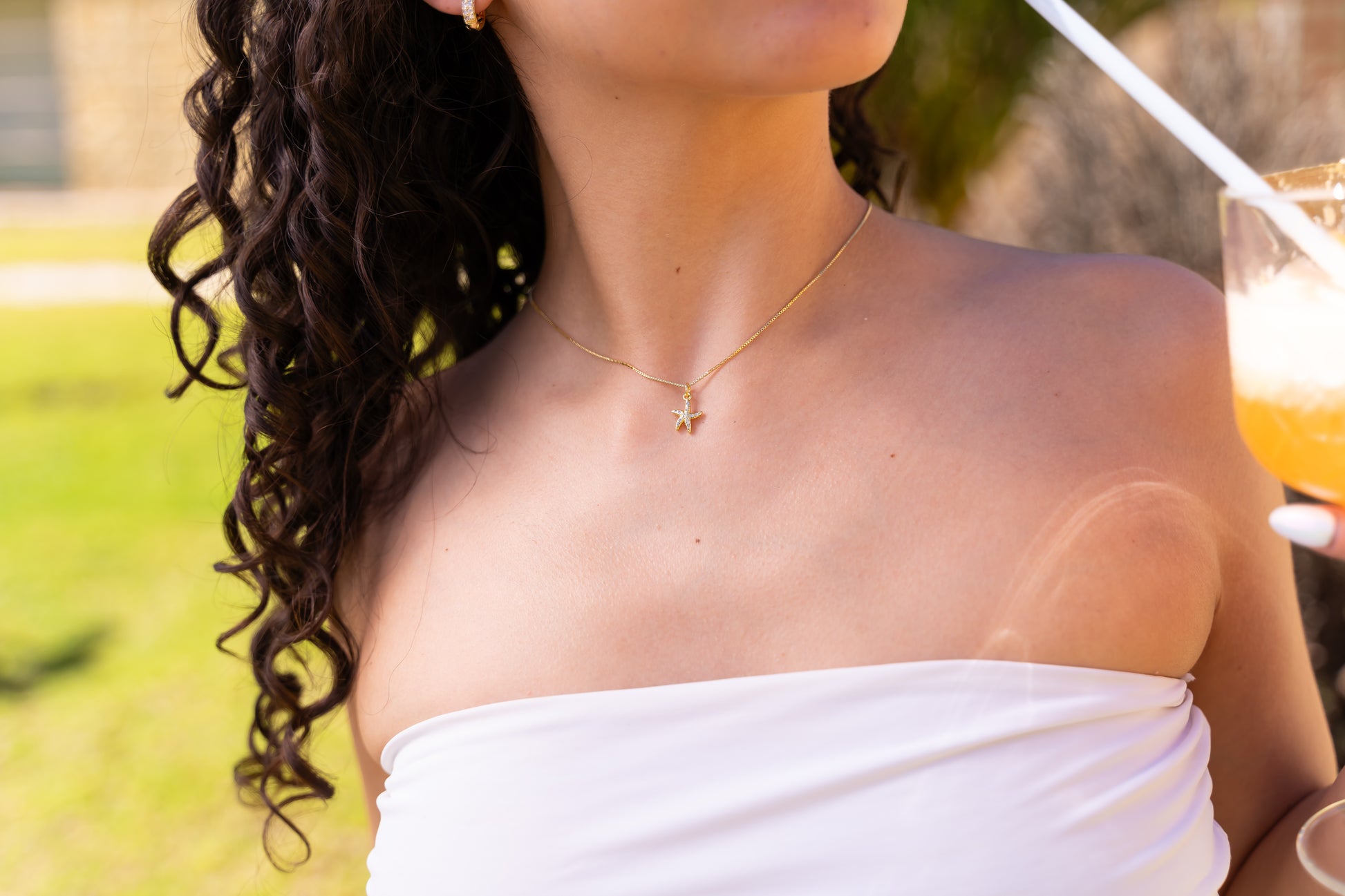 Deslumbra con nuestro Collar Estrella de Mar, una joya que captura la magia y la gracia del océano en un diseño encantador y elegante.